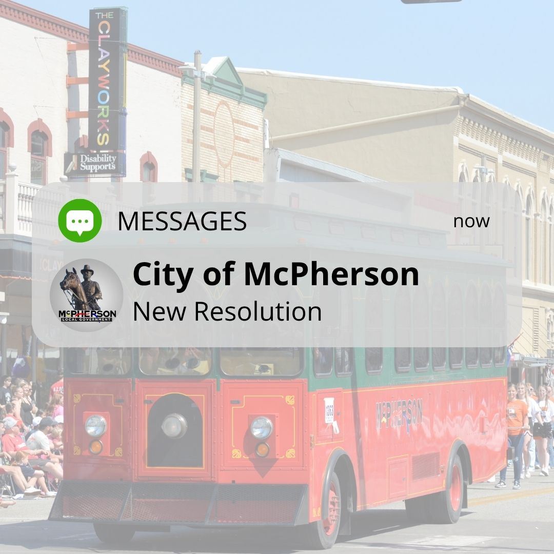 NOW, THEREFORE, BE IT RESOLVED BY THE GOVERNING BODY OF THE CITY OF MCPHERSON, KANSAS: